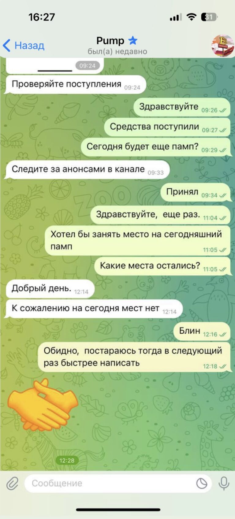 Однако если на следующий день памп будет проводиться на той же бирже, вам сообщат, что мест больше нет. Сначала мы не верили в это, но потом решили проверить лично.